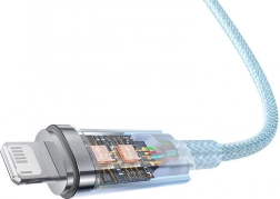 Kabel je vybaven dvojitým čipem pro monitorování teploty, což chrání vaše zařízení před přehřátím a přebíjením. Indikátor stavu nabíjení poskytuje vizuální kontrolu nad procesem pomocí barevného světla. Odolná konstrukce s jádrem z pocínované mědi a dvojitým opláštěním zaručuje dlouhou životnost a stabilní výkon. Nylonové opletení a zesílené spoje mezi kabelem a konektory zvyšují odolnost proti opotřebení.