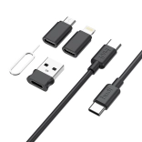 V balení je USB‑C kabel a redukce USB‑C → Lightning, USB‑C → Micro USB a USB‑C → USB‑A pro nabíjení i přenos dat.