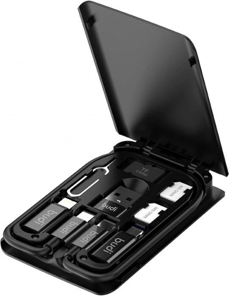 Tento praktický držák SIM karet a adaptérů od značky Budi je navržen pro uživatele, kteří potřebují udržovat přehled o svých SIM kartách a příslušenstvích. Produkt obsahuje: