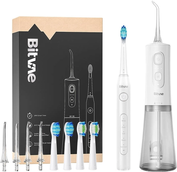 Sonický zubní kartáček se sadou nástavců a ústní sprchou Bitvae D2+C2 (bílý)