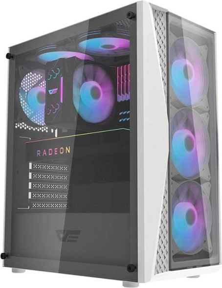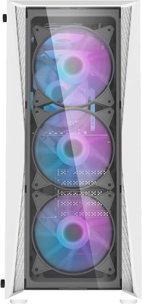 Bočnice i čelní panel z tvrzeného skla zvýrazní komponenty a ARGB efekty. Elegantní bílá skříň skvěle zapadne do herních i kancelářských sestav.