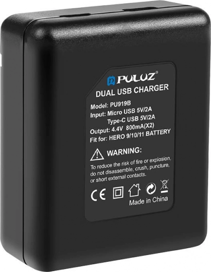 Díky výstupnímu napětí 4.4V a proudovému výstupu 800mA Puluz nabíječka efektivně a bezpečně nabíjí baterie HERO 9, 10, 11 a 12.