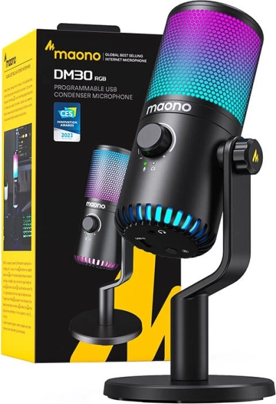 Vylaďte své streamy a hovory s mikrofonem Maono DM30RGB. Kardioidní snímání soustředí pozornost na váš hlas, zatímco integrované ovládání umožní bleskově ztlumit, nastavit citlivost i hlasitost sluchátek. RGB podsvícení s 7 barvami a 5 gradienty dodá vašemu setupu působivý vzhled.