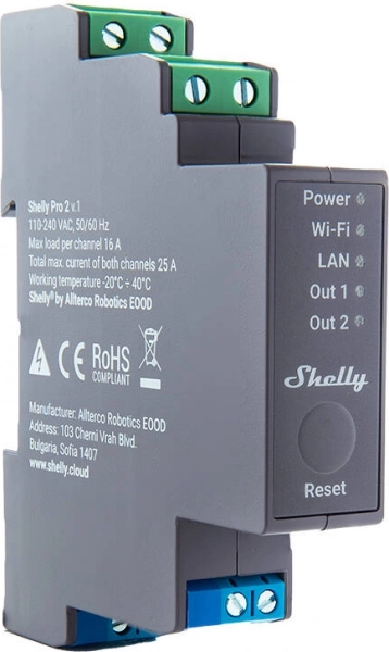 Shelly Pro 2 je pokročilé dvoukanálové relé určené pro montáž na DIN lištu, které podporuje kuplení s WiFi, LAN a Bluetooth. Každý kanál zvládá zátěž až 16 A, což činí relé ideálním pro různé aplikace domácí i budovové automatizace. Je kompatibilní s oblíbenými hlasovými asistenty, poskytuje velkou flexibilitu a pohodlné ovládání.