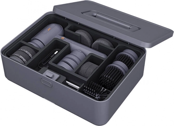 - Základna; Podstavec se suchým zipem; Houbová podložka; Houbový kartáč; Drhnoucí podložka; Podložka na suchý zip; Plochý kartáč; Špičatý rohový kartáč; Zaoblený kartáč; Brousek na nože; Kabel USB‑C