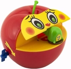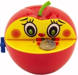 Tato plastová pokladnička napodobuje oblíbené jablko a je ideální pro děti od tří let. Díky mechanickému natahování na klíček je použití zábavné a snadné. Po vložení mince červík minci uchopí a zanese ji do útrob jablka, což děti motivuje k šetření.