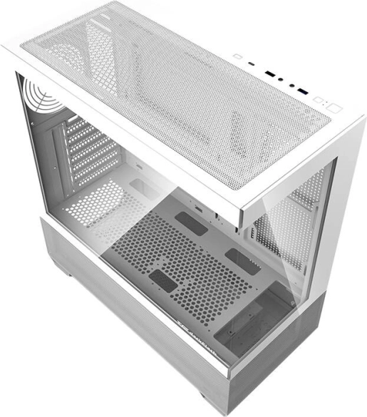 DARKFLASH DS900 Air je elegantní midi tower v bílé barvě s předním a levým panelem z tvrzeného skla, který nechá vyniknout vaší sestavě. Díky promyšlenému proudění vzduchu, perforacím a podpoře až 7 ventilátorů snadno udržíte nízké teploty i u výkonných komponent. Stabilní lichoběžníkové nožičky s tlumicími podložkami minimalizují vibrace a zlepšují provozní komfort.