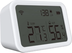 Senzor teploty a vlhkosti nabízí přesné měření od -20 °C do 80 °C pro teplotu a od 0 % do 100 % pro vlhkost. Možnost převodu jednotek. Snímač intenzity světla pomáhá optimalizovat energetickou účinnost.