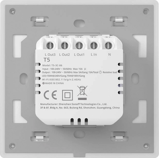 Dotykový panel se dvěma tlačítky doplňuje 8 režimů barevného podsvícení (např. Party, Noční světlo, Barevné). Vypínač potvrzuje akci jemným zvukem a vibrací. Lze jej použít jako bránu eWeLink pro obousměrné ovládání téhož světla s příslušenstvím Sonoff R5 nebo S‑MATE (není součástí balení). Vestavěný časovač a možnost aktivace scén rozšiřují automatizaci domácnosti, a s tlačítkem Sonoff SNZB‑01 může sloužit i jako zvonek.