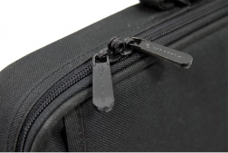 Vyztužené bočnice a měkká pěnová vrstva chrání zařízení před nárazy a poškrábáním, zajišťovací popruh drží notebook pevně na místě.