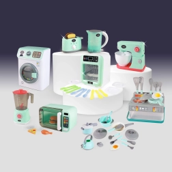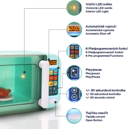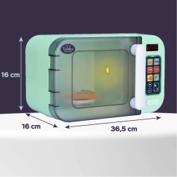 Tato stylová dětská mikrovlnná trouba je ideální doplněk do každé dětské kuchyňky. Po zapnutí programu se talíř uvnitř začne otáčet, mikrovlnka svítí a vydává zvuky jako skutečný spotřebič. Díky dotykovému panelu děti snadno „volí“ programy a učí se základům kuchyňských činností formou hry.