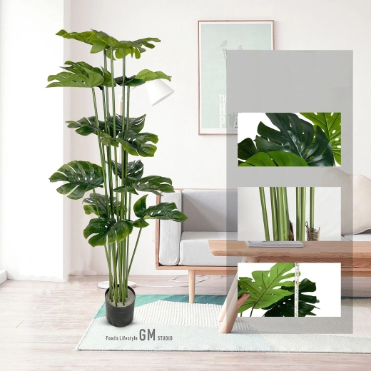 Dodajte svému interiéru přírodní atmosféru bez starostí. Tato umělá rostlina vysoká 160 cm věrně napodobuje vzhled živých rostlin a stane se výraznou dominantou v obývacím pokoji, ložnici, hale i kanceláři. Vhodná je zejména tam, kde chybí světlo nebo kde není možné zajistit pravidelnou péči.