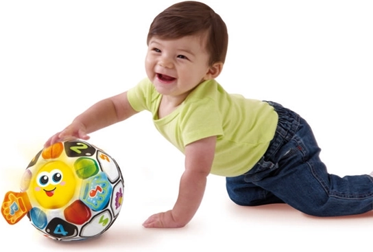 Díky svým schopnostem se míček umí kutálet před dětmi, což zaujme jejich pozornost a motivuje je k pozorování, lezení a hraní. Tento barevný kopačák s různými texturami a zvukovými efekty nejen že rozvíjí smyslové vnímání, ale také poskytuje hmatovou stimulaci díky jemnému plyšovému potahu. Světelné a zvukové efekty doplněné svítícím obličejem a oranžovými tlačítky přispívají k poznávání barev.