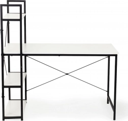 Vytvořte si přehledné a moderní pracovní místo. Tento loftový stůl spojuje minimalistický vzhled s praktickými detaily: prostorná deska 120 × 64 cm, integrované boční police a pevná ocelová konstrukce s práškovým lakem zajišťují stabilitu i dlouhou životnost. Laminovaný povrch MDF se snadno udržuje a odolává každodennímu používání.