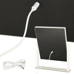 Minimalistický design v bílé barvě a odolný kovový rám se stabilním stojanem s protiskluzovou úpravou zaručují pohodlné používání i při nastavování úhlu. Zrcadlo je ideální pro denní make-up, kosmetické rituály i detailní úpravy obočí či pleti.