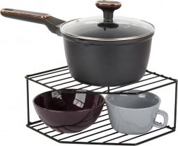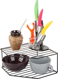 Praktická dvoupatrová rohová police přináší okamžité rozšíření úložného prostoru ve skříňkách, na lince i v polici. Robustní kovová mřížka je odolná vůči korozi a každodennímu používání, takže spolehlivě unese hrnce, talíře, misky i šálky. Díky rohovému tvaru skvěle využije jinak hluché místo.