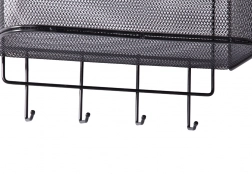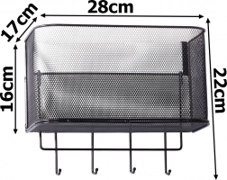 Tento kovový závěsný košík je nejen praktický, ale také stylový. Je prostorný a umožňuje uložení různých předmětů, od kuchyňských doplňků po toaletní potřeby. 4 přídavné háčky můžete použít pro zavěšení klíčů, ručníků nebo kabelek.