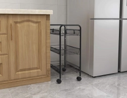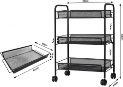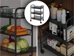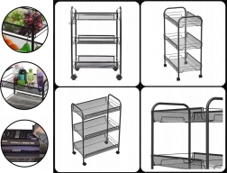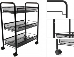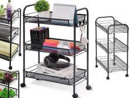 Praktický kovový úložný vozík je vybaven třemi police a díky kolečkům se snadno přesouvá po domácnosti. Skvěle se hodí pro použití v kuchyni, koupelně nebo kanceláři. Multifunkční design umožňuje uspořádání toaletních potřeb nebo kuchyňských pomůcek podle potřeby.
