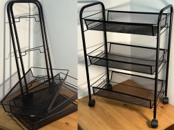 Konstrukce vozíku zajišťuje snadnou montáž a stabilitu. Dodávané sadu háčků můžete využít pro zavěšení dalších předmětů.