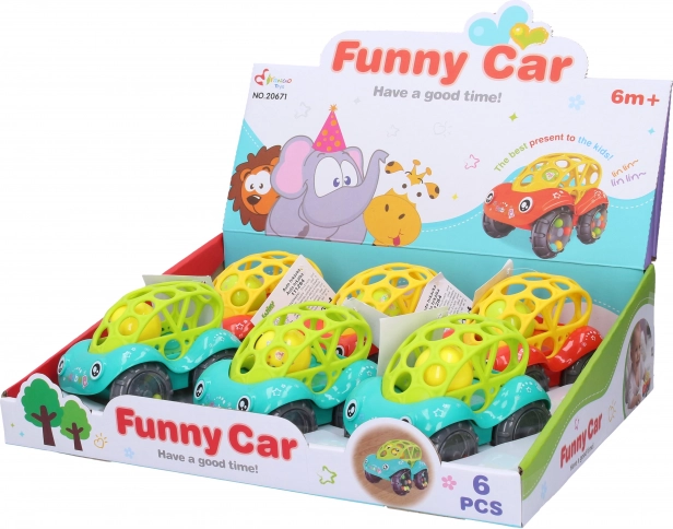 Auto chrastítko o velikosti 11,5 cm je ideální první hračka pro miminka od 6 měsíců. Díky kuličce uvnitř vytváří příjemný zvuk, který dítě zabaví, zatímco barevné provedení podporuje vizuální vnímání a koordinaci oko–ruka.