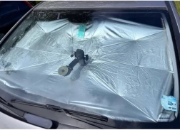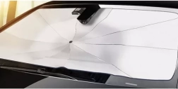 Clona se rozkládá stejně jako deštník a snadno se upevňuje na vnitřní stranu čelního skla. Speciální stříbrný povlak odráží sluneční paprsky, což udržuje interiér automobilu chladný.