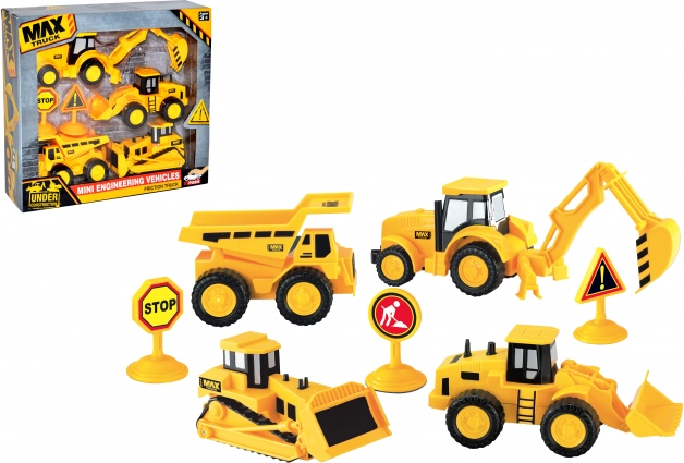 Sada stavebních strojů pro malé nadšence stavební techniky. Obsahuje čtyři různorodé stroje včetně buldozerů a bagrů, které rozšiřují možnosti hry.