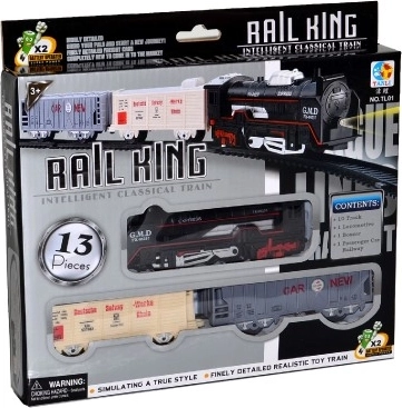 Detailně zpracovaná historická vlaková souprava s bohatým příslušenstvím potěší malé i velké nadšence železnice. Nabízí světelné a zvukové efekty, 2 vagony a mašinku a kompletní sadu kolejí. Snadné sestavení a průměr okruhu 67 cm zaručují zábavu i v menších prostorách. Baterie 2× AA nejsou součástí balení.