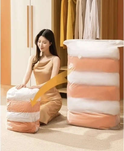Zkomprimujte objemné textilie během chvilky. Po odsátí vzduchu se obsah výrazně zmenší a ve skříni či kufru vznikne místo navíc.
