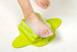 Sprchový masážní kartáč na nohy kombinuje pohodlí, hygienu a relaxaci v jednom. Stačí jej připevnit pomocí přísavek na rovný povrch ve sprše či vaně, nanést oblíbený sprchový gel a nechat jemné štětinky postarat se o důkladné čištění i povzbuzující masáž chodidel. Pravidelné používání pomáhá zjemnit drsné a popraskané paty a udržet nohy svěží.