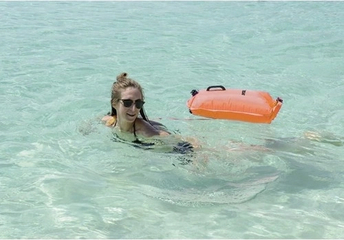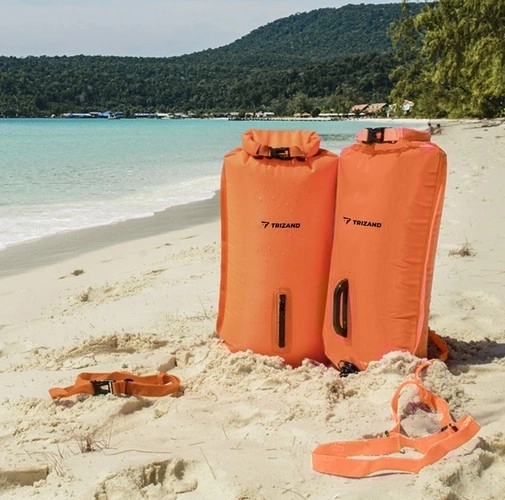 Praktická kombinace plavecké bójky a vodotěsné kapsy, umožňuje skladování nezbytností během vodních aktivit.