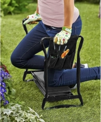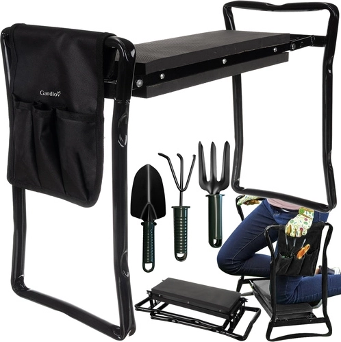 Hledáte způsob, jak si ulevit při práci na záhonech a zároveň mít všechno po ruce? Zahradní klekátko a sedátko GARDLOV kombinuje komfort, stabilitu a funkčnost v jednom. Robustní železný rám se širokými nohami zajišťuje jistotu i na nerovném povrchu, zatímco silné polstrování z pěny EVA tlumí tlak na kolena a zvyšuje pohodlí při dlouhém zahradničení.
