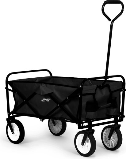 Hledáte spolehlivý pomocník na zahradu, chalupu i každodenní použití? Tento černý skládací zahradní vozík kombinuje stabilitu kovového rámu s odolnou textilií a hladkým chodem kol. Ideální pro převoz materiálu, nářadí i větších nákupů – a to s minimální námahou.