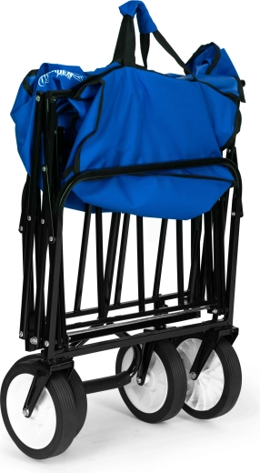 Vozík složíte během několika sekund do plochého tvaru, takže šetří místo v garáži i v kufru auta. Ideální pro rychlé použití kdykoli a kdekoli.