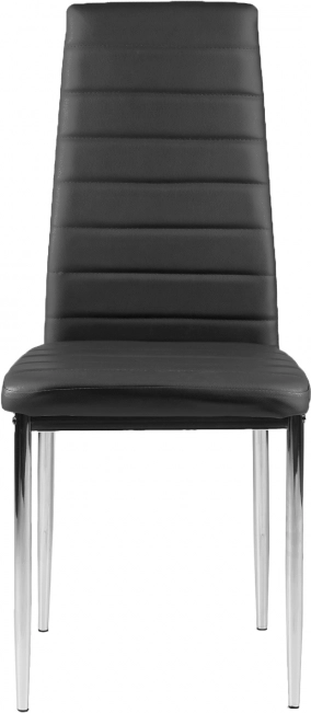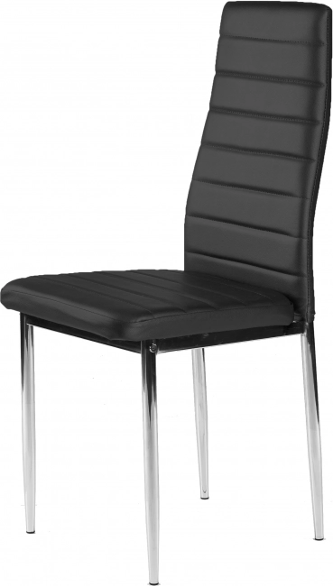 Černé čalounění z eko kůže v kombinaci s chromovanými nohami vytváří čistý, moderní vzhled, který snadno sladíte s jídelním stolem i doplňky.