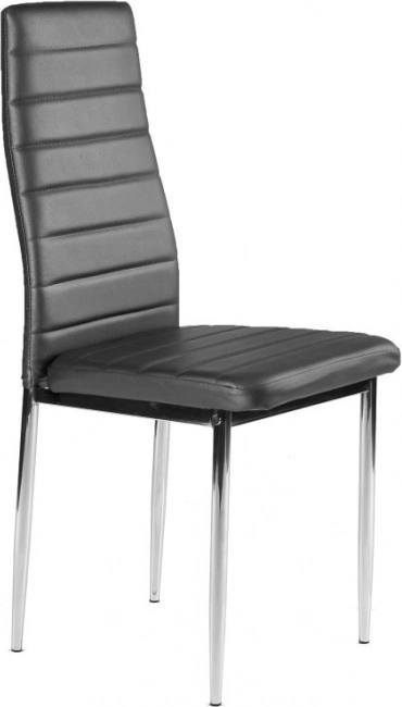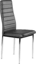 Šedé čalounění z eko kůže a chromované nohy vytváří elegantní kombinaci, která zapadne do moderní jídelny, kuchyně i veřejných prostor.