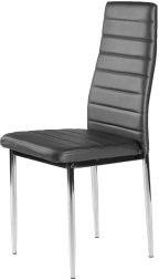 Vylaďte svůj interiér nadčasovou sadou 4 židlí, které kombinují moderní design a praktické materiály. Šedá eko kůže se snadno čistí a působí elegantně, chromované ocelové nohy dodávají lehkost a odolnost. Vysoké, profilované opěradlo a měkká PU pěna zaručí pohodlné sezení u rodinného stolu i při delších setkáních.