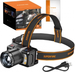 Výkonná čelová svítilna Superfire nabízí jas 700 lm, dosvit 210 m a až 8 režimů svícení. Potěší bezdotykovým senzorem mávnutí, nastavitelným úhlem naklopení, nabíjením přes USB-C, odolností IP43 a výdrží až 6,5 hodiny. Odolá pádu z 1 m a je skvělá pro turistiku, kolo i kempování.