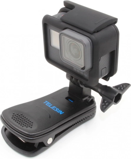 Zubatý klip a robustní čelist drží pevně na popruzích batohu, pásku i popruzích tašek, takže kamera zůstane stabilní i v pohybu.
