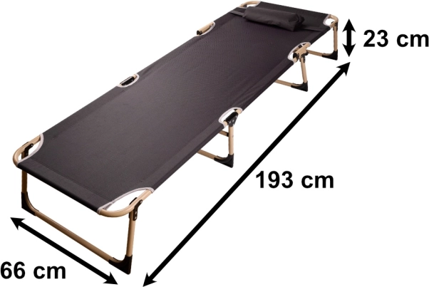 Lehké a odolné skládací polní lůžko – kanadyjka s 4polohovým opěradlem poskytne pohodlný spánek na kempování i na zahradě. Má ocelovou konstrukci, potah z tkaniny Oxford, nosnost 120 kg a kompaktní rozměry 193 × 66 × 23 cm. Po složení zabere minimum místa a v balení je i polštář.