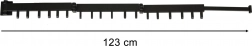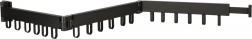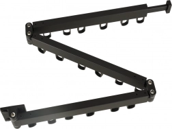 Rohová lišta s pevnými háčky a kloubem umožní praktické uložení podél stěny a rozložení jen tehdy, když je to potřeba.
