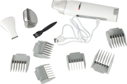 Bezdrátový strojek WMARK Pet se 6 hřebenovými nástavci (3–23 mm), kartáče, zastřihovač tlapek a pilník na drápky – vše v jednom setu.