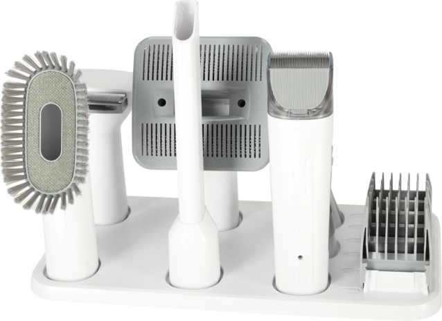 Kompletní grooming set WMARK Pet vám usnadní úklid i péči o mazlíčky. Kombinuje vysávání srsti přímo při česání, tři úrovně sacího výkonu pro citlivé mazlíčky, filtr pro zachycení prachu a alergenů a bohaté příslušenství pro stříhání, kartáčování i detailní úpravu.