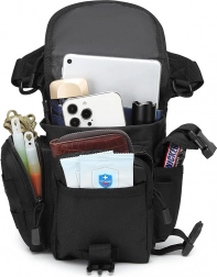 Chytré členění kapes, včetně kapsy na baterku nebo pero a držáku na karabinu, udrží mobil, peněženku, klíče či drobné nářadí na svém místě. Odolná textilie s voděodolnou úpravou a robustní prošití se osvědčí v terénu i ve městě. Díky uchycení k pasu a stehnu máte volné ruce a vybavení vždy po ruce.