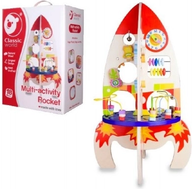 Dřevěný edukační hrací stůl ve tvaru rakety je navržen tak, aby zabavil a rozvíjel dovednosti vašeho dítěte prostřednictvím řady interaktivních aktivit.