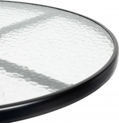 - Tvrzená skleněná deska stolu (Ø 80 cm) s elegantním rámem