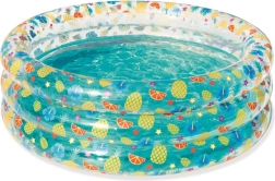 Tento stylový dětský bazének s transparentními stěnami a veselým ovocným motivem přinese do vaší zahrady tropickou atmosféru. Vysoké, měkké stěny poskytují příjemnou oporu a pohodlí, zatímco tříkruhová konstrukce zajišťuje stabilitu i při dovádění.
