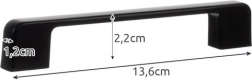 Specifikace produktu zahrnují černou matnou barvu, hliníkový materiál a dva montážní otvory s roztečí 96 mm. Rozměry jsou 10,4 x 2,2 x 1,2 cm, což zajišťuje pevnou a stabilní konstrukci pro dlouhou životnost.