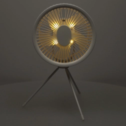 Součástí je praktické dálkové ovládání pro pohodlné zapínání, změnu rychlosti i aktivaci jemného LED osvětlení například při večerním čtení. Ventilátor má kompaktní rozměry a stabilní tripodový stojan, takže zabere jen minimum místa a dobře drží na stole.
