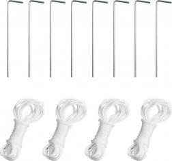 Součástí balení jsou kolíky a šňůry pro spolehlivé upevnění stanu, aby odolal větru a zůstal pevně na místě.