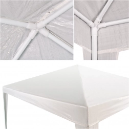 Proměňte zahradu v příjemnou zónu odpočinku a setkávání. Tento bílý zahradní stan 3 × 3 m díky pevné kovové konstrukci a odolnému plášti z PE (90 g/m²) poskytuje jisté zázemí během grilování, oslav i tržních akcí. Maximální výška 2,55 m přináší dostatek prostoru pro pohodlný pohyb i umístění nábytku.
